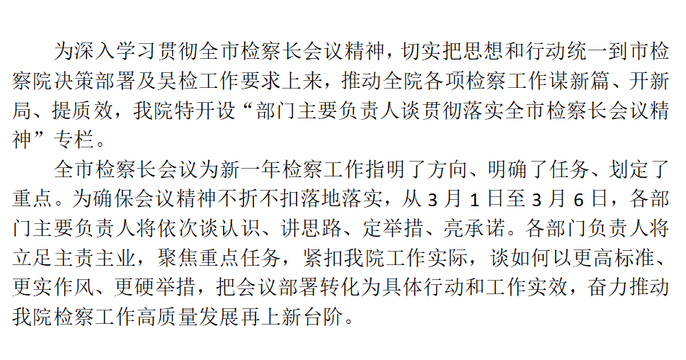 | 贯彻落实全市检察长会议精神“部门谈落实”丨办公室:锚定质效提升 做实中枢保障 |
