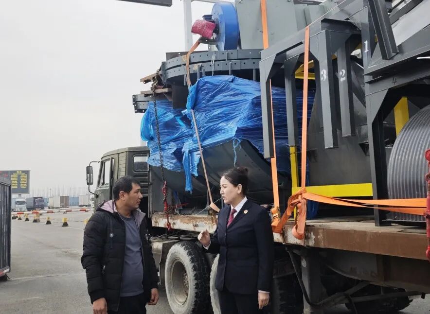2025年11月14日,新疆维吾尔自治区霍尔果斯市检察院检察官沙比拉·买吉提在霍尔果斯口岸国门前向外籍司机介绍道路交通安全法。