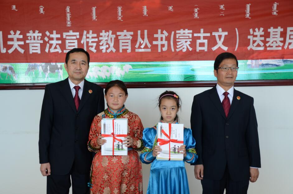 为了深入贯彻落实自治区检察院关于开展《普法宣传教育丛书(蒙古文)》送基层活动的要求精神,加大普法力度,落实习近平总书记在参加全国“两会”内蒙古代表团审议时明确提出的“要扎实推进民族团结和边疆稳固”的工作要求。近日,土右旗检察院在土右旗将军尧镇小召村、盐海子村、程奎海村等12个少数民族聚居村以及土右旗蒙古族小学、土右旗民一中、民二中、土右旗图书馆开展蒙文普法丛书送基层活动。