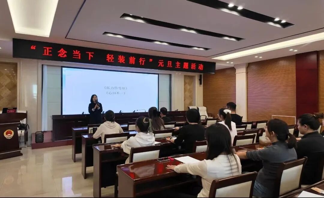 活动伊始,郭宇老师通过互动游戏迅速打破隔阂,让现场氛围从严肃转向轻松;随后,结合检察工作的特性,通过图解“压力反应曲线”,深入分析检察人员在日常工作和生活中面临的各类压力源,引导全体人员正确看待压力,寻找适当疏导渠道,增强自我调节能力。